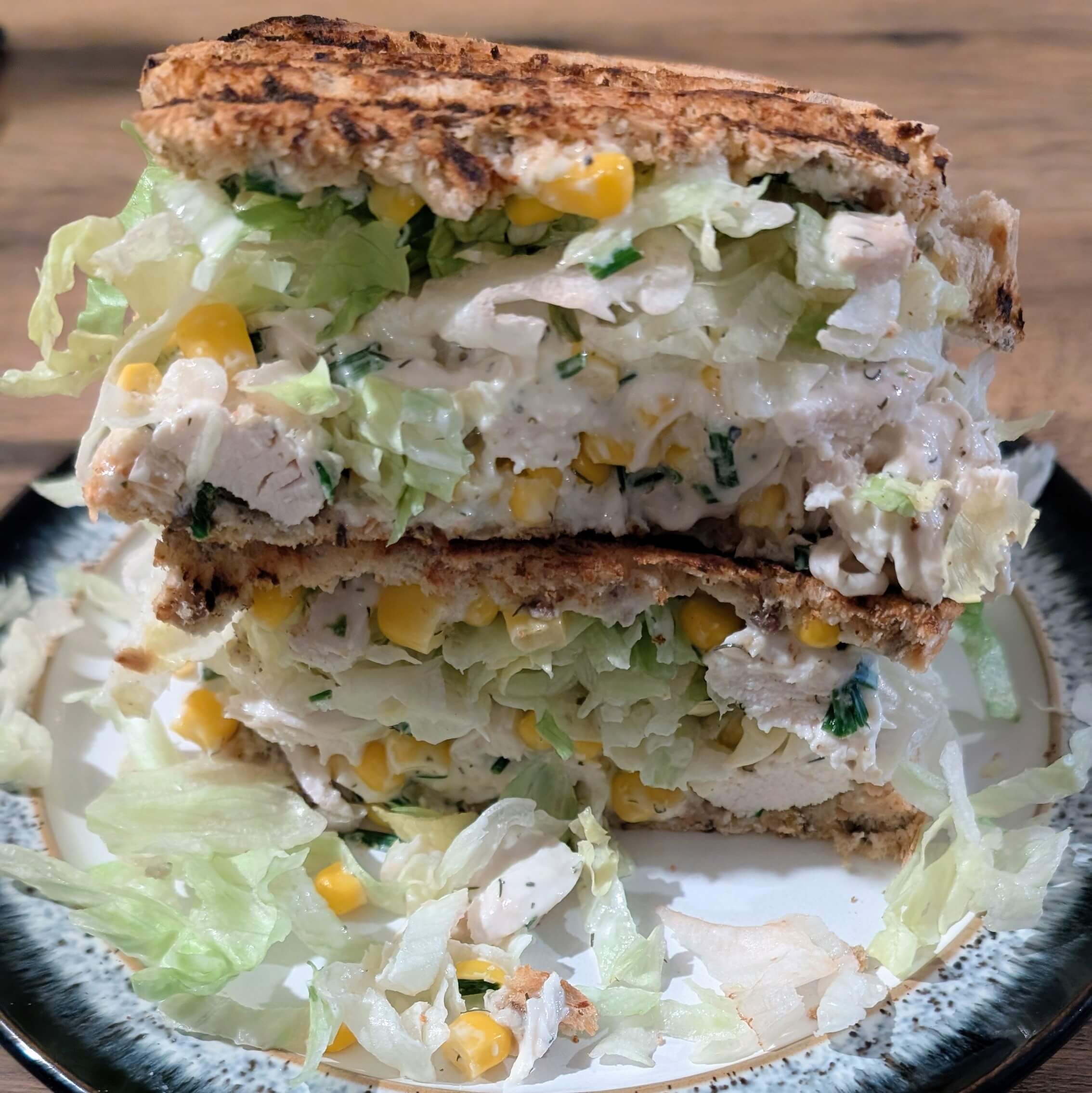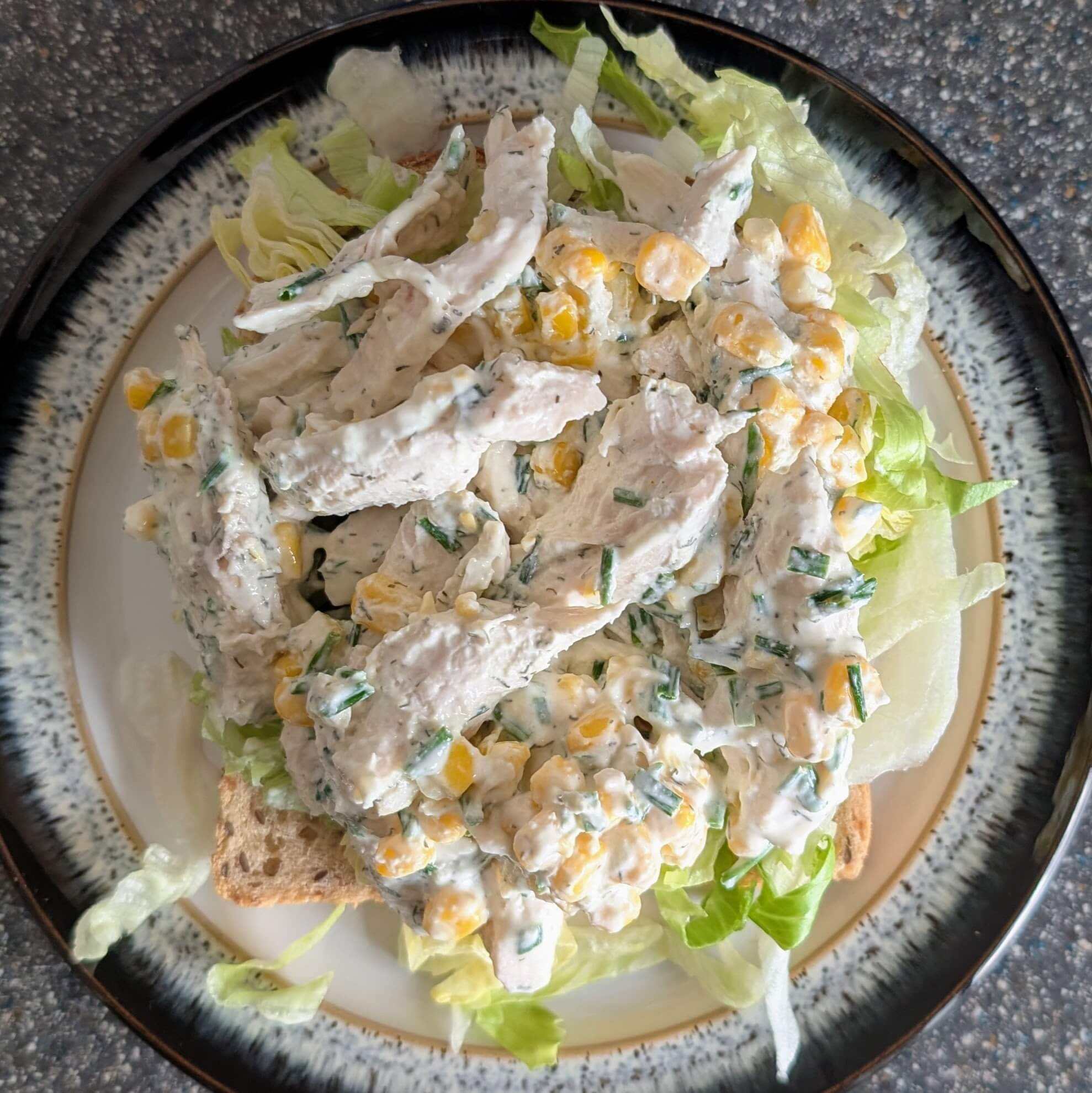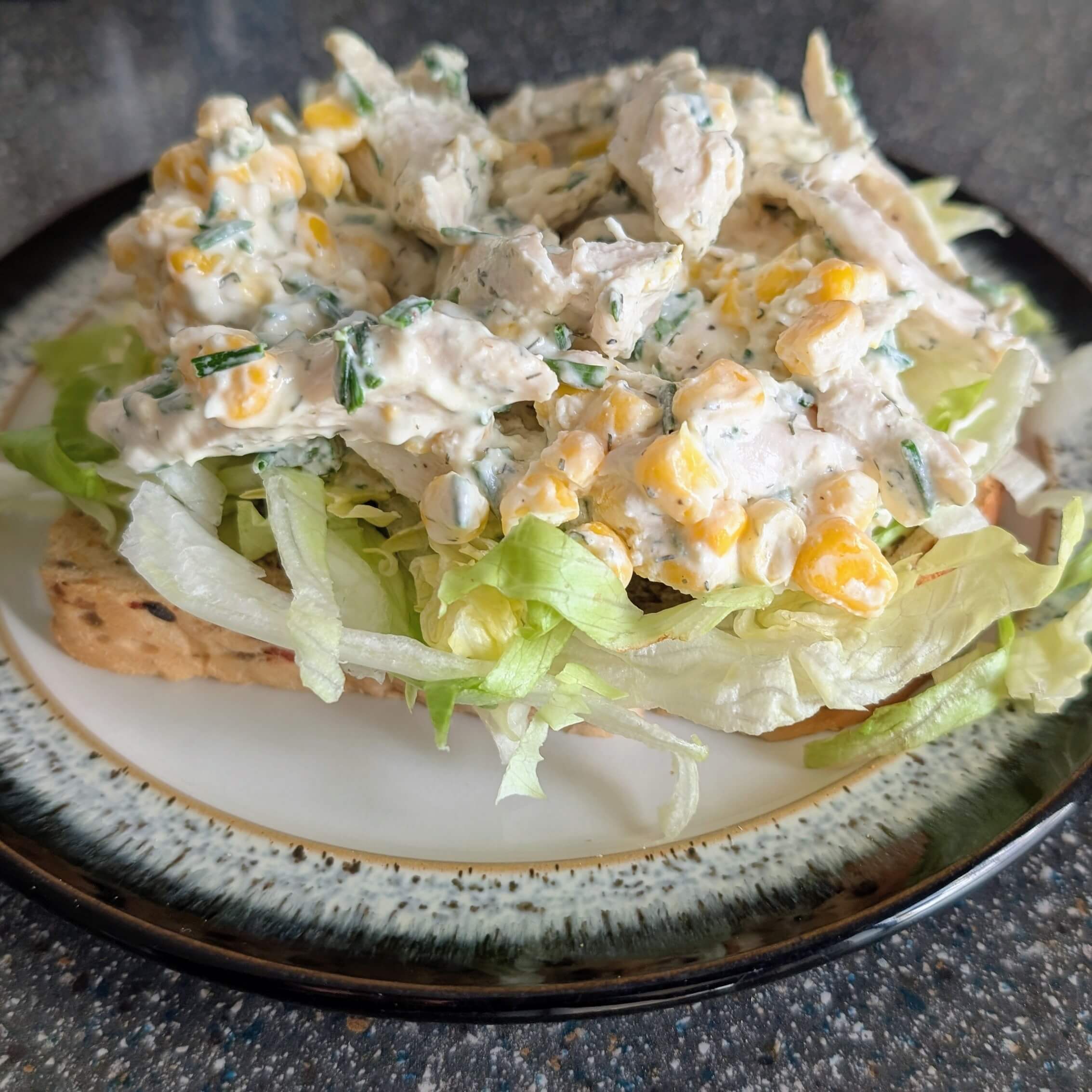 - Combine. Add the crème fraîche mix and sweetcorn to the shredded chicken. Mix together and serve on bread, toss through pasta, pile onto grains or spoon onto lettuce.